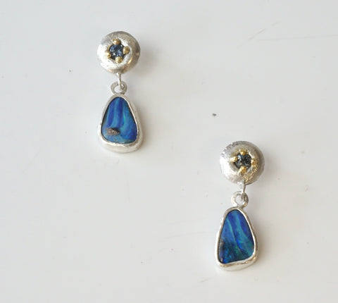 Boulder Opal and Sapphire Earrings